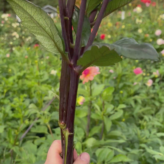 I love this variety with its smoky pink petals and slightly purple center. Sometimes gets to be a unique tan color. Foliage is a bit darker too. Tons of petals. Strong grower and makes great tubers. Benefits from disbudding. Definitely a keeper!